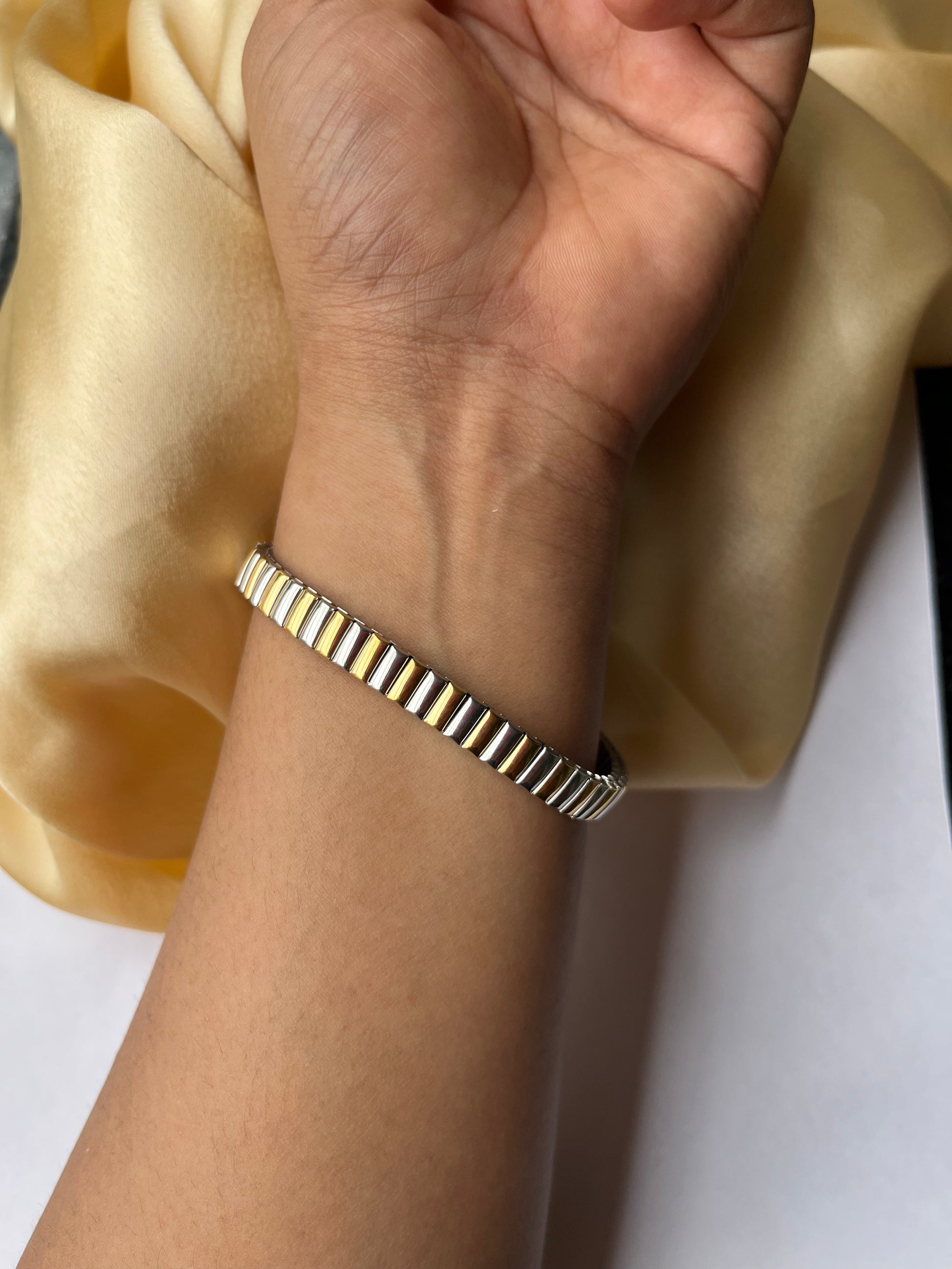 The Nova Band Bracelet is a refined blend of timeless design and modern wearability. Whether worn solo or stacked, it brings a polished finish to your look with effortless ease.