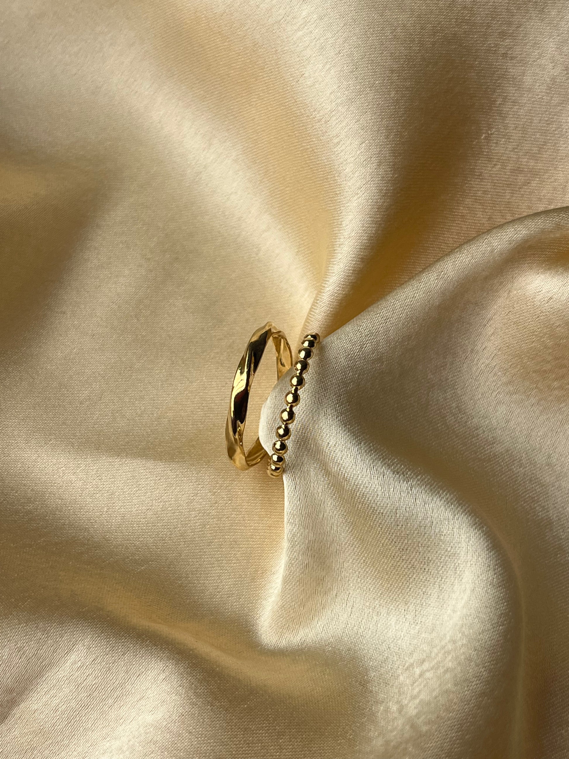This elegant Dual Band delicate gold ring brings a soft, luminous glow to your everyday style. With its clean silhouette and polished finish