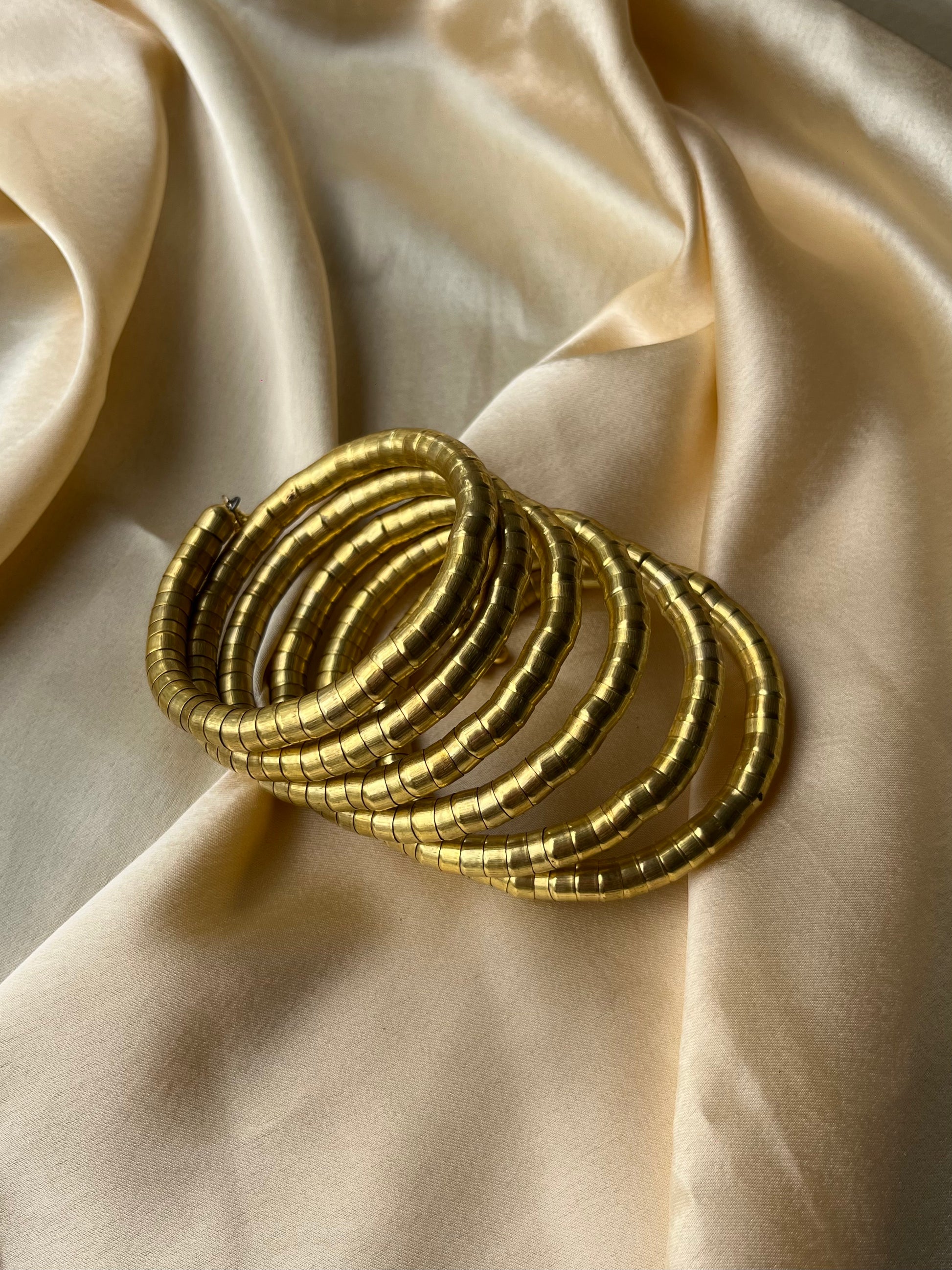 Bold yet timeless, our Solstice Brass Coil Bangles embody effortless elegance. Handcrafted in pure brass, these fluid, coiled silhouettes radiate strength and sophistication, making them a versatile statement for both contemporary and classic styles.